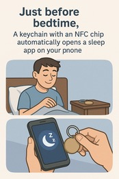 このキーホルダーがあれば、スマホをかざすだけで睡眠アプリが自動で起動。